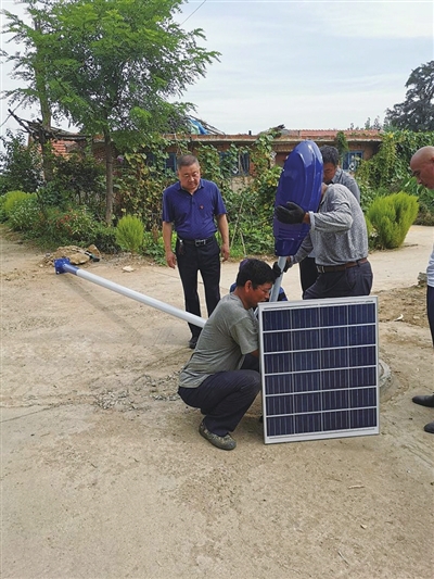 孙海军争取帮扶资金为村里安装太阳能路灯。