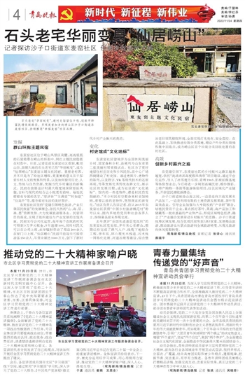 石头老宅“华丽蜕变”,建村史馆留住乡愁,创新开辟富民增收新路径。多项美誉加身的崂山区沙子口街道东麦窑社区,持续擦亮“幸福麦窑”社区品牌。
