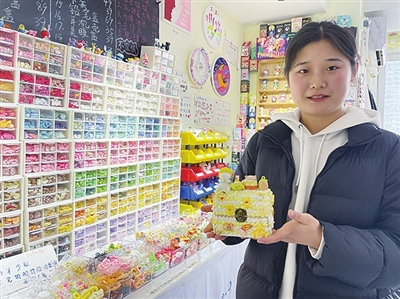 虽然只有26岁,牛美娜在经营小店方面却考虑得很周到,她也因此收获了大量顾客。从去年8月开店至今,如今的小店到了周末常常挤得满满当当,暑假更是需要排队。“小学到大学年龄段的顾客最多,十几元到八九十元就可以来一次解压的DIY,他们都特别喜欢。”除此以外,牛美娜说,还有退休的阿姨也会和自己的姐妹一起来体验,喜欢得爱不释手。将爱好变成工作,是很多人的梦想,牛美娜在这个过程中收获了快乐,也迎来很多挑战。小店如何引流,如何在网上推送,接触不同层面的人,给她带来许多新的认知。“以前我比较内向、腼腆,有点社恐,在开店的一年多时间里,我也慢慢变得外向,学会怎么和人打交道。”牛美娜说,接下来的时间她要用心钻研,多看多琢磨,激发灵感,给大家带来更多好玩解压的新品。