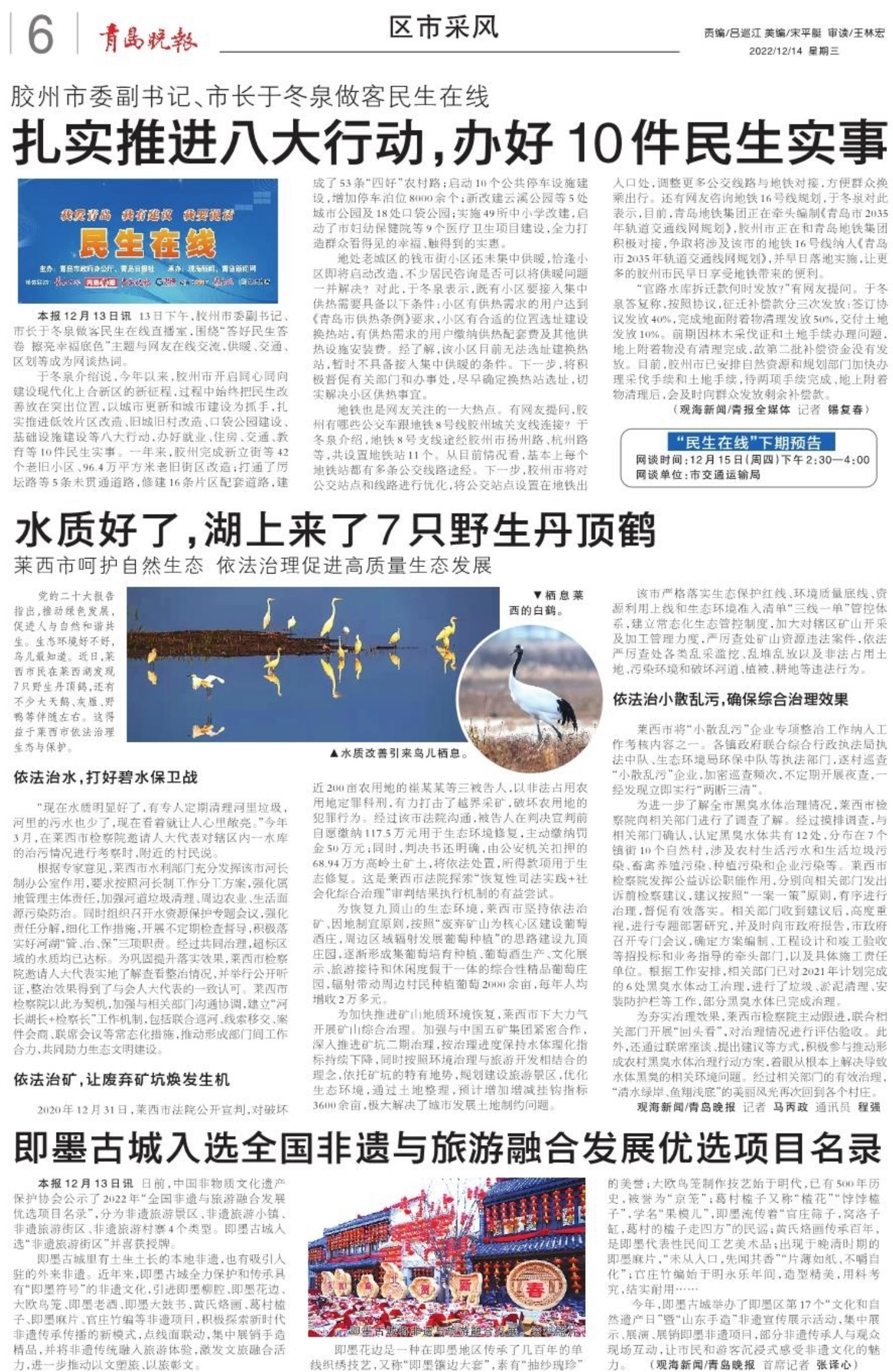 A01 头版 A02 国家公祭日 A03 新时代 新征程 新伟业 A04 核心价值观·感动每一天 A05 民生新闻 A06 区市采风 A07 活力海洋之都 精彩宜人之城 A08 火热的一线 A09 城事 A10 学习宣传贯彻党的二十大精神主题征文 A11 文化时讯 A12 民生新闻