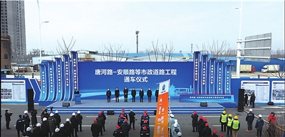 去年12月,在唐河路-安顺路打通工程现场,重点市政道路工程的开工仪式顺利举行。通过一年的不懈努力,今年12月26日,唐河路-安顺路打通、辽阳路快速路等6项缓解区域交通拥堵的重点工程实现主线通车,标志着我市市政道路建设一年主线通车成为标准模式,突破了以往市政道路建设工期长、进度慢、对市民出行影响大等制约因素,市民出行的堵点、难点和痛点问题正在得到高效破解。