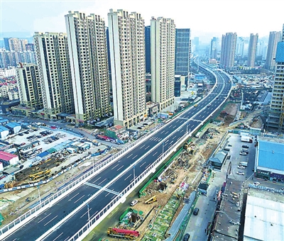 辽阳路快速路(福州路——海尔路段)主线桥已经有车辆通行。 栾丕炜 摄