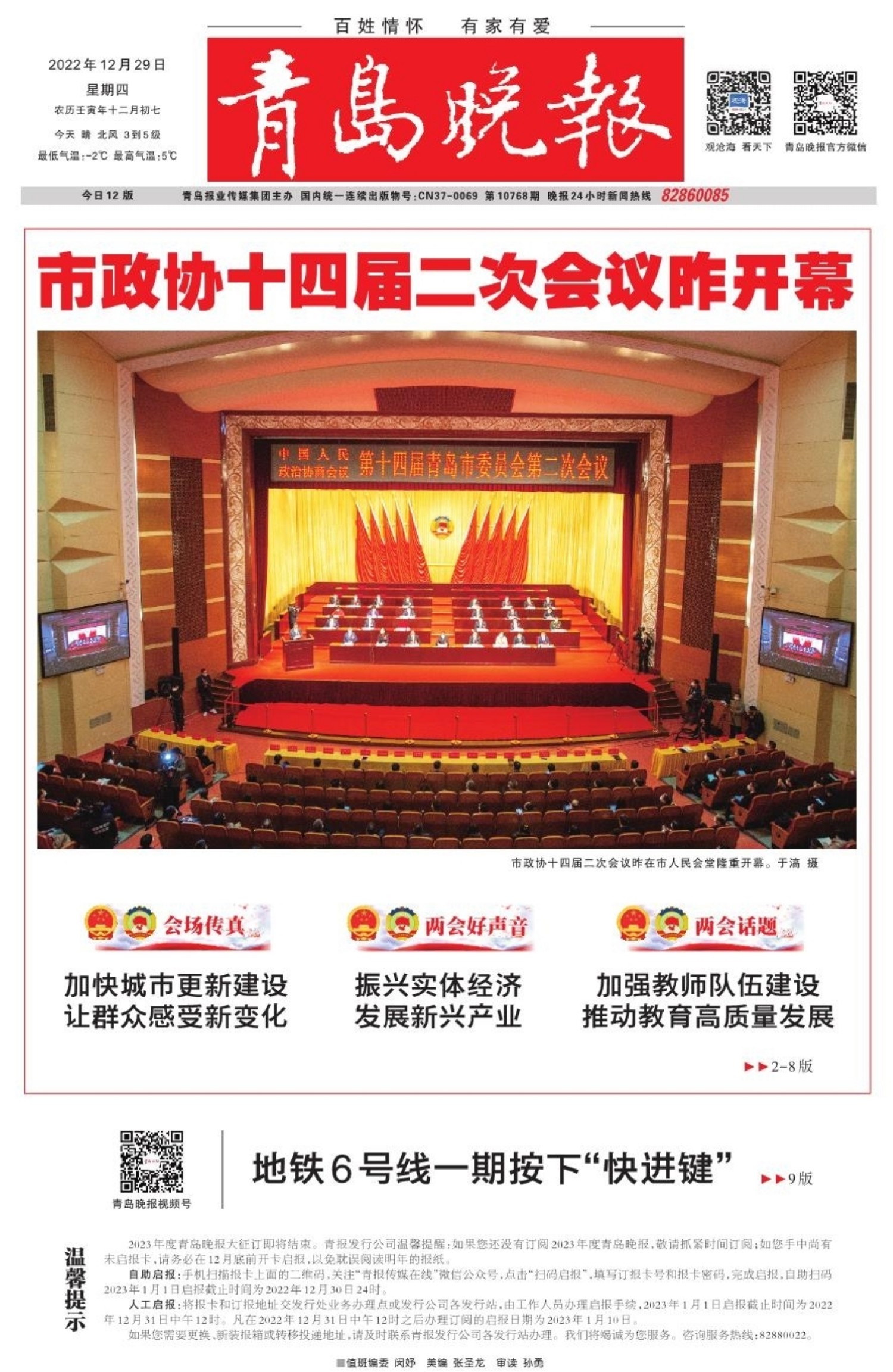 A01 头版 A02 新时代 新征程 新伟业 聚焦青岛两会 A03 新时代 新征程 新伟业 聚焦青岛两会 A04 新时代 新征程 新伟业 聚焦青岛两会 A06 新时代 新征程 新伟业 聚焦青岛两会 A08 新时代 新征程 新伟业 聚焦青岛两会 A09 城市更新建设 让生活更美好 A10 活力海洋之都 精彩宜人之城 A11 教育发布 A12 教育