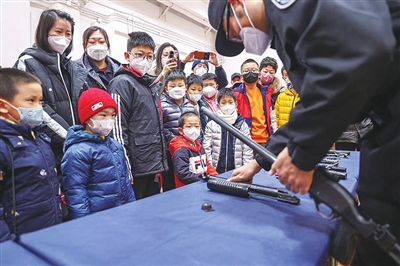 “这是手枪、这是防暴枪……”现场,一件又一件警用武器装备映入大家的眼帘,并让大家近距离接触。在铁路特警队员的带领下,孩子们和退休民警还观看了特警拳击操表演,各类枪械武器的拆解让人目不暇接,战术小组的配合展示赢得掌声连连。同时,讲解员也为大家展示了铁路民警的日常工作情况,让家属深刻感受体会到民警工作的辛劳和肩负的责任,提升了家属们对人民警察职业的认同感和自豪感。