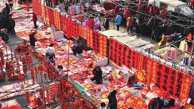 李村大集卖福字的一条长街。栾丕炜 摄