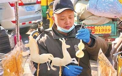 流亭大集上捏糖人的手艺人。栾丕炜 摄