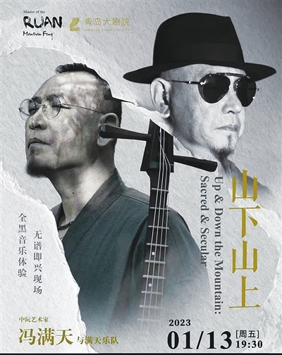 看完话剧和舞台剧,再来欣赏《冯满天“山上山下”音乐会》。在1月13日的音乐会中,观众可以听到改编自古代诗词的音乐与朗诵《将进酒》《离骚》。此外,还有融合中国传统音乐作品的《信天游》《乌苏里船歌》《戏鹿》等作品。观众可以在现场充满着摇滚的古意中闭着眼,在一场自由的表演中与灵魂对话。另外,“阮痴”冯满天将以讲座的方式,在12日带你找寻“消失的声音”。
