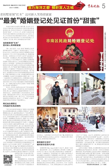 市南区西部历史建筑安娜别墅,自去年12月中旬以市南区重点打造的特色文旅项目新形象重新亮相以来,引来众多市民打卡,恋爱氛围拉满,甜度持续“超标”。1月9日上午,坐落于这栋历史建筑的市南区婚姻登记处西部巡回点正式启用,当天上午共迎来9对办理结婚登记的新人,他们通过预约的方式来到现场领到了红彤彤的结婚证,以“爱要久”为主题,共同上演甜蜜爱恋新“剧情”。