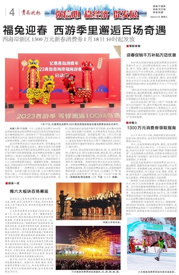从1月18日至3月底,西海岸新区将在商贸、住宿文旅、体育活动、农业农村等领域发放新春消费券1300万元。