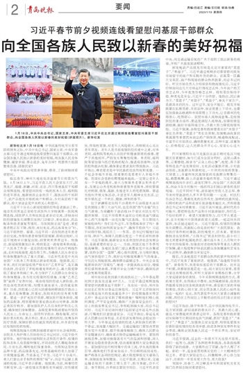 四川省绵阳市北川羌族自治县石椅村是汶川地震灾后重建村,如今已成为全国文明村。这里山清水秀、云雾缭绕,被誉为“云朵上的山寨”,枇杷、苔子茶等特色农产品发展很好,文化活动蓬勃开展,乡村旅游很旺,各族群众和谐相处,一片欣欣向荣的景象。大屏幕上,身着传统民族服装的羌族群众聚集在一起,载歌载舞,脸上洋溢着幸福的笑容。习近平通过视频连线向乡亲们、游客们拜年,向全国广大农民朋友,向奋斗在乡村振兴一线的同志们致以新春的美好祝福。习近平同村干部、游客就村里收入怎么样、春节来村里旅游的人多不多等问题一一交流。村民们告诉总书记,靠着优美的自然风光、独特的民族风情,石椅村的农产品和农家乐旅游越来越红火,并热情邀请总书记来村里做客。习近平高兴地说,新时代的乡村振兴,要把特色农产品和乡村旅游搞好,你们是一个很好的样子。希望大家继续努力,百尺竿头更进一步,在乡村振兴中取得新的更大成绩,一起迈向共同富裕,生活越过越红火。习近平强调,疫情防控措施优化调整后,我最担心的是农村和广大农民朋友。农村医疗条件相对薄弱,防控难度大、任务重。要坚持像脱贫攻坚那样,“五级书记”抓农村防控,县乡村三级尤其要承担起属地责任,强化返乡务工人员和大中专学生防疫服务,加强农村老幼病残孕等重点人群医疗保障,最大程度维护好农民群众身体健康和正常生产生活秩序,确保群众平安过年。