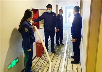 胶州市消防救援大队在检查消防安全设施。