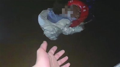 救生队员伸手,准备把坠海女孩救上船。