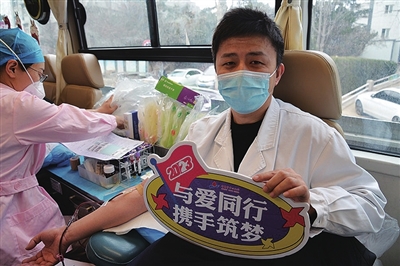 作为联盟单位,青岛市中心血站和青岛市中心医疗集团在活动现场签署《卫生健康系统应急献血公益联盟协议书》,并共同为应急献血公益联盟单位揭牌。医务献血代表——青岛市中心医院检验科主任牟晓峰发出献血倡议,呼吁医务人员加入到无偿献血队伍中,共同守护患者生命,助力健康青岛建设。当天,牟晓峰处理完科室工作后,像往年一样走上献血车,撸袖献血200毫升。在他的带领下,科室共有6名医务人员参加了此次无偿献血。“每年医院组织的无偿献血活动我都会参加,累计献血量已达到了2000多毫升。”牟晓峰说。