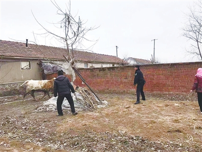 本报2月10日讯 9日上午,在青岛西海岸新区大场镇,一头耕牛受惊后,在村里到处乱窜。