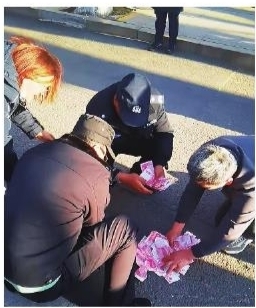 2月15日下午4时许,青岛市公安局开发区分局黄岛派出所巡逻民警巡逻至崇明岛路与舟山岛街交会处,发现路上散落大量百元钞票。现场人流量较多,风也比较大。巡逻队员栾坤、崔乐伟、薛坤龙、张艳泳、刘立法见状,立即控制现场,俯身帮助捡钱。在周围热心群众的共同努力下,将现金一一捡回。据了解,这是市民刘先生不慎撒落的随身携带的5万元现金。后在治安岗亭内清点,现金一分不少。拿着失而复得的5万元钱,刘先生对青岛开发区警方的帮助表示衷心感谢。