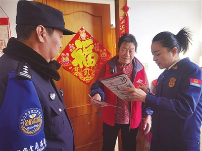 防火监督人员和民警走进村民家中,宣传消防安全知识。 刘卓毅 摄