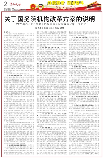 党的二十大对深化党和国家机构改革作出重要部署,党的二十届二中全会审议通过《党和国家机构改革方案》。这次党和国家机构改革的总体要求是,贯彻落实党的二十大精神,以习近平新时代中国特色社会主义思想为指导,以加强党中央集中统一领导为统领,以推进国家治理体系和治理能力现代化为导向,坚持稳中求进工作总基调,适应统筹推进“五位一体”总体布局、协调推进“四个全面”战略布局的要求,适应构建新发展格局、推动高质量发展的需要,坚持问题导向,统筹党中央机构、全国人大机构、国务院机构、全国政协机构,统筹中央和地方,深化重点领域机构改革,推动党对社会主义现代化建设的领导在机构设置上更加科学、在职能配置上更加优化、在体制机制上更加完善、在运行管理上更加高效。