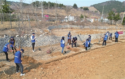 本报3月10日讯 3月12日是全国第45个植树节,为大力弘扬植绿、护绿、爱绿的生态文明新风尚,在植树节即将到来之际,青岛公安金盾志愿服务队的平安使者联合企业公益人士,20多人来到即墨华盖山开展义务植树志愿服务活动。活动现场,志愿者们扶苗培土、提桶浇水,相互配合种下树苗。