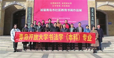 青岛开放大学书法专业学生合影。