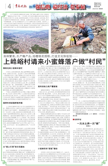 当下乍暖还寒,樱桃花却已盛放,“粉”透漫山遍野,青岛人期盼的“樱桃自由”指日可待。三月赏花、四月尝果,樱桃花是青岛春天特有的浪漫,但很少有人知道,这场粉色盛宴里,不仅有山的味道、水的味道,更有小蜜蜂们辛苦授粉添加的一抹甜蜜。在城阳区夏庄街道的上山色峪村,素有“齐鲁樱桃第一谷”的山色峪樱桃谷中,千万只蜜蜂正在忙忙碌碌。2020年,上山色峪社区利用当地得天独厚的生态环境优势,与青岛市畜牧兽医研究所合作,创建中华蜜蜂种蜂场,几年来,蜜蜂成了这里的特殊“村民”,发展成为当地特色畜牧养殖产业,带动村民增收致富,形成独特的“蜜蜂文化”。