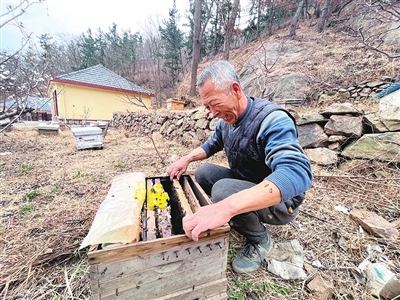 “目前上山色峪蜜蜂共有360多箱,天暖以后繁育季一到,可以扩大到800多箱。”上山色峪村党支部书记孙玉祥告诉记者,2019年,上山色峪社区与青岛市畜牧工作站合作,建设中华蜜蜂养殖与授粉技术试验示范基地,逐步发展成为当地特色畜牧养殖产业。