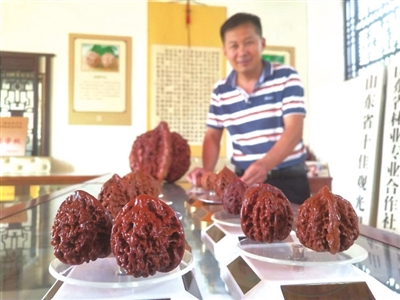 “2015年春天,我花费十多万元从河北买回一批官帽核桃芽,嫁接成功后,成立了吴家文玩核桃观光园。之后又先后去河北、北京、天津等地引进四座楼、虎头、白狮子、满天星、磨盘、流星雨、南将石、鸡心和盘龙纹等30个文玩核桃稀缺品种。”吴占嘉说,经过青岛晚报多次跟踪报道后,合作社名气大增,知名度越来越高,核桃的销量也是逐年稳步攀升。