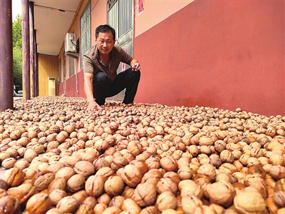 吴占嘉晾晒核桃。(资料图)
