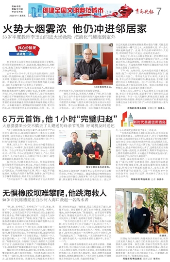 回想起当天的情形,陈德亮依然有些后怕,虽然之前见别人救过人,他自己的水性也还可以,却没想到救人这样困难。虽是这样,但面对危急情况,他并不想当一个旁观者,如果再遇到这样的情况,他还是会选择义无反顾。“我是土生土长的青岛人,不能眼睁睁地看着一条生命从自己眼前沉下去。只要能救,我定会拼尽全力。”陈德亮坚定地说。