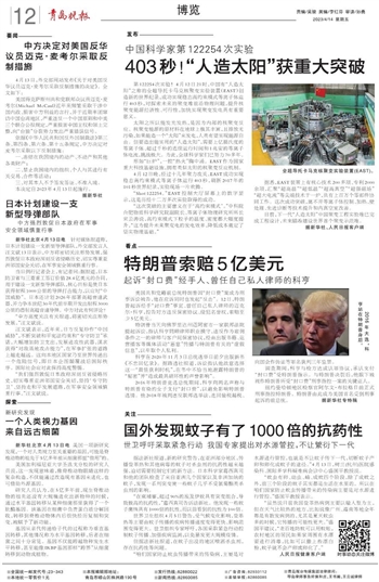 第122254次实验!4月12日21时,中国有“人造太阳”之称的全超导托卡马克核聚变实验装置(EAST)创造新的世界纪录,成功实现稳态高约束模式等离子体运行403秒,对探索未来的聚变堆前沿物理问题,提升核聚变能源经济性、可行性,加快实现聚变发电具有重要意义。
