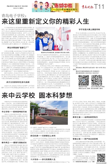 在职教高考的天地里,中云犹如一匹黑马,正在奋蹄扬鬃,奔向梦想,把孩子送到中云,许你一个美好未来!观海新闻/青岛晚报 记者 于娜