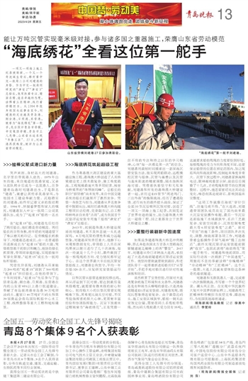 本报4月27日讯 27日,全国总工会召开2023年庆祝五一国际劳动节暨全国五一劳动奖和全国工人先锋号表彰大会。记者从市总工会了解到,今年青岛市共8个集体、9名个人获得表彰,分布在轨道交通、建筑、交通运输、生物医药等不同行业领域。
