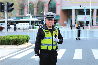 市南交警文登路中队中队长曲建涛在执勤。