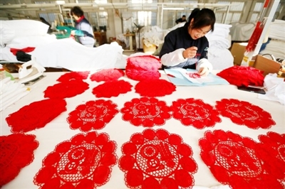 据青岛国华工艺品有限公司董事长任华介绍,即墨花边是在即墨地区传承了几百年的民间传统抽纱工艺,又称即墨镶边大套,因其针法工艺独特,造型宛如浮雕,在国际市场被誉为“抽纱行业的妙品瑰宝”,出口欧美、中东及东南亚的20多个国家和地区。