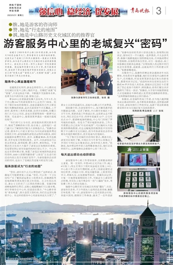 “为了推介历史城区内的网红景点,增进市民、游客对区域的了解,市南区自今年春节以来推出了多项打卡网红景点集章活动,深受年轻人喜欢。”张静说,每次帮这些年轻人指明集章地点后,他们总是特别开心,这种情绪也会感染中心的工作人员。