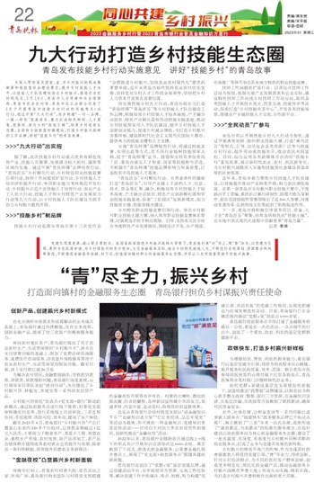 党建引领谋发展,凝心聚力勇担当。在国家纵深推进乡村振兴战略大背景下,青岛银行乘“时”而上,顺“势”而为,以党建为引领,勇担为农民谋幸福、为乡村谋振兴的责任使命,立足金融服务实际,融合乡村特色地域人文,不断进行系统谋划、资源整合和统筹推进,不断推进金融服务向镇、村下沉,打造面向镇村群众的金融服务生态圈,书写让三农百姓喜笑颜开的振兴故事。