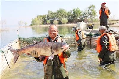“今天捕获的各种鱼大约在3万余斤,水库西岸设有野生鱼专卖店,市民可以前来选购。”莱西市产芝水库管理中心渔业生产科负责人战德文介绍,“去年放流了460余万尾花鲢、白鲢鱼苗。因为鲢鱼在水库不能自我繁殖,必须每年人工投放苗种。”每年都要根据实际情况投放不同品种的鱼苗,有效补充和恢复水生生物资源的群体,改善水生生物的种群结构,消灭水体中的浮游生物和其他腐质物,从而降低水中的氮磷等污染物含量,使水质更加清洁,生态更加平衡。