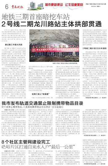 本报6月4日讯 记者从青岛地铁集团获悉,为维护青岛市轨道交通公共安全,保障乘客生命财产安全,我市发布《青岛市轨道交通禁止限制携带物品目录》,自6月12日起施行,有效期至2028年6月11日。