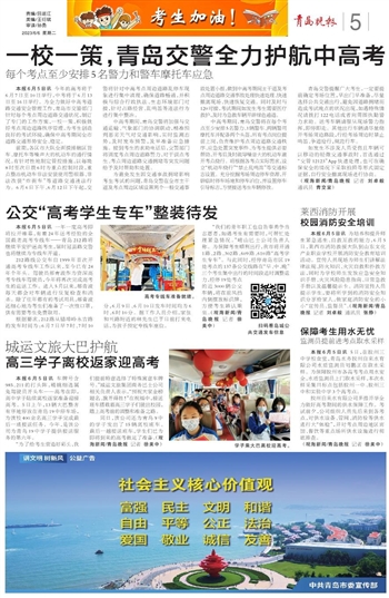 本报6月5日讯 车牌号含985、211的打头阵,精挑细选属兔驾驶员开头车……高考在即,高中学子陆续离校返家准备迎接高考。5日上午,13辆大巴整齐有序地停放在青岛19中停车场,为该校400余名高三学子完成最后一班接送任务。今年,是该公司为青岛19中学子提供接送服务的第六年。