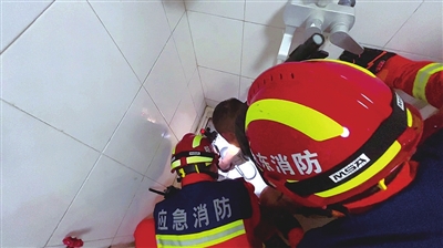 本报6月5日讯 6月4日深夜11时20分许,青岛开发区消防救援大队接到求救电话,南岗小区内,一名男子手掌被卡在下水道里。
