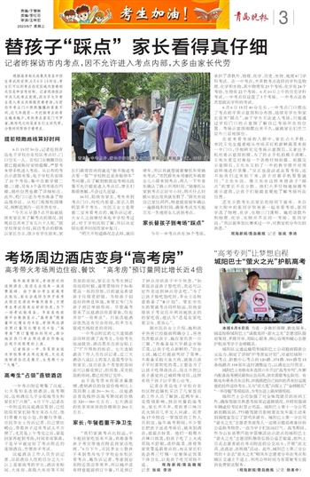 “今天从早晨7点开始就陆续有家长来了解考点的情况,到现在总共来了有五六十人呢。”据学校保安介绍,探访考点的群体以家长为主,很少有学生前来,家长们最常咨询的就是“能不能进考点看一看”“学校附近是否能停车”等问题,在了解到根据高考相关政策不允许提前进入考点后,家长们都很理解,不会过久逗留。