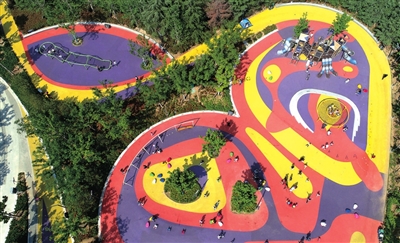 走进即墨岘山公园,绿道、观景廊桥、儿童游乐区、书吧、篮球场及其他配套设施……在这里看到的是昔日荒地变身居民家门口“打卡地”的完美演绎,感受到的是即墨区山头公园建设中生态建设和为民服务的完美诠释。