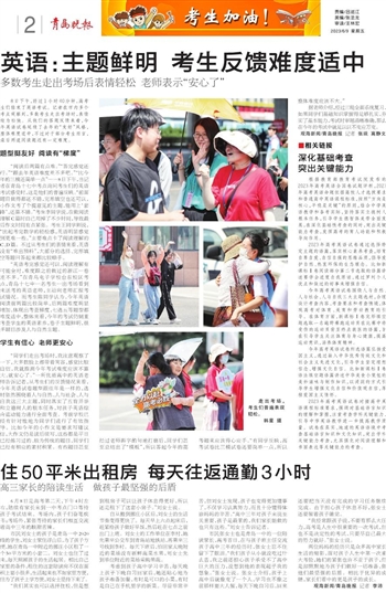 “阅读后两篇有点难。”“答完感觉还行。”“跟去年英语难度差不多吧。”“比今年的三模还简单一点”……8日下午,当记者在青岛十七中考点询问考生们的英语考试感受时,这是他们的普遍反映。“前面题目做得都还不错,完形填空也还可以,小作文考了个提意见的主题,能用上‘套路’,还算不错。”考生李同学说,在做阅读理解C篇时自己用掉了不少时间,导致最后作文时间有点紧张。考生王同学则说,“比起考完数学的轻松感,英语明显感觉到更难一些。”主要难点卡了阅读理解的C、D篇。不过从考生们的表情来看,英语没有“难出预料”,大部分的选择、完形填空等题目答起来都比较顺手。