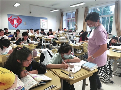 “高考第一天,刚考完语文科目,有位学生表示牙痛不舒服,校医赶紧给孩子检查并测量体温偏高,发现是牙齿发炎后及时给孩子吃上药并安抚休息,持续关注学生情况。下午数学科目开考前,又给学生两次测温,确保没有其他症状又不发烧的前提下让学生进去考试。”盖庆爽告诉记者,当考试结束后,老师们又带学生到医院进行检查,医生表示没有其他问题,老师们这才放心。“像这样的情况有很多,校园里,老师们更像是父母一样,时时照顾好学生的细微情感。”盖庆爽说。