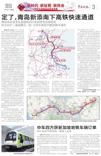 本报6月14日讯 14日,山东省政府召开2023年全省重点高铁项目建设调度视频会议透露,潍宿高铁(潍坊至宿迁高速铁路)及青岛联络线项目可研报告已获国家发改委批复。这标志着潍宿高铁前期工作取得重大进展,距离年底前开工再近一步。该项目是我市城市更新和城市建设三年攻坚行动中的重点铁路项目。根据省政府统一部署,该项目将力争2023年底前开工建设,预计2028年完工通车。