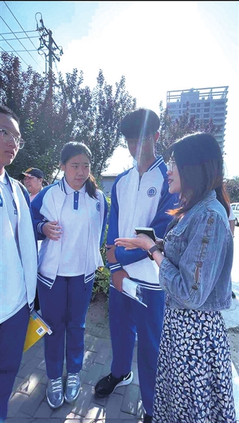 这是范姗姗送考的第三天,作为新手班主任,她一直非常激动,“这是我带的第一届学生,从七年级带到九年级,特别希望他们能够超常发挥,实现自己的理想。”刚接过班主任的担子时,范姗姗第一感觉是压力,但很快便将压力转为动力,加上本身对学生很亲,她在这个角色里很快就得心应手。班主任的工作很繁杂,尤其八年级正是孩子们思想不稳定的时候,经常需要处理学生和学生、学生和家长之间的矛盾。范姗姗的办法是“亦师亦友、严慈相济”,不论是数学教学还是班级秩序上,她很严格,跑操、就餐、上放学的路队,她都要求全班集合完毕排好队再走,从而培养同学们的集体意识。面对孩子们的青春期心理波动,她会换位思考。“家里有个年龄差不多的妹妹,所以潜意识也是把同学们当弟弟妹妹看待,在思想、生活、健康方面都特别关照,希望他们这三年可以更好地成长。”