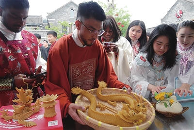 逛即墨古城、旱地龙舟比赛、投壶游戏、汉服体验……