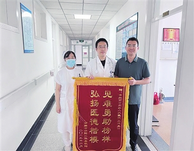 旅游途中遇游客突发险症,第一时间上前施救;一个月后游客转危为安,其儿子知恩图报专程赶赴青岛感谢救命恩人……近日,一面写着“见难勇助榜样,弘扬医德楷模”的锦旗,送到了市北区人民医院内科主治医师王超的手中,以表达对这名青岛好医生危难时出手相救的感激之情。