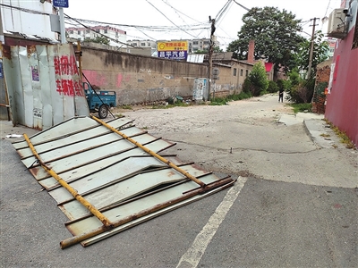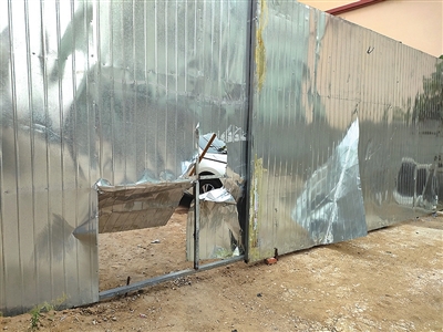 铁皮围挡被打开洞口。