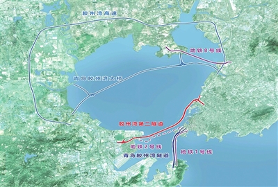 据介绍,胶州湾第二隧道由青岛国信集团投资建设、中铁十四局施工,工程主线全长17.48公里,西起青岛西海岸新区淮河东路,向东沿刘公岛路下方敷设,穿越胶州湾,至青岛港附近登陆,在海泊河河口以高架桥梁形式衔接青岛东岸城区。其中,隧道长14.37公里(海域段9.95公里),为世界上建设规模最大、长度最长的海底公路隧道,采用双洞双向六车道的主隧道加中间服务隧道的布置方式。隧道盾构段长3253米,使用3台盾构机施工,其中2台直径15.63米的主线隧道盾构机和1台直径8.18米的服务隧道盾构机。