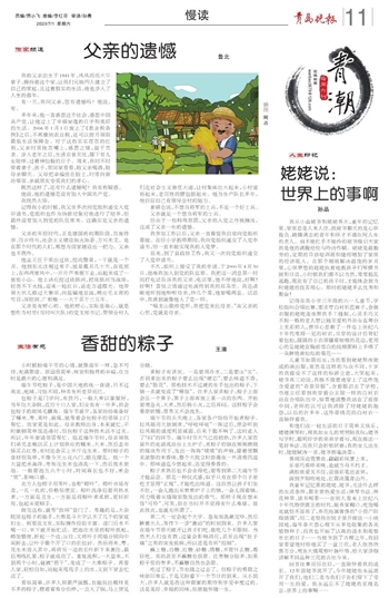 吃过了粽子,节也随之过去了。但粽子的香甜之味依旧难忘,于是又盼着下一个节日的到来。从小到大,许多人就是在这种甜蜜的期待和享受中度过的。这是美好、幸福的回味,但愿能伴随一生。